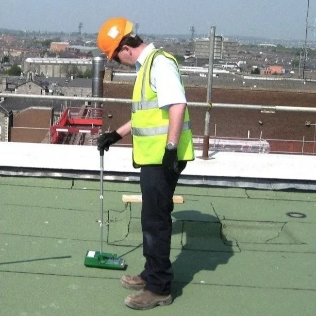 Electronic Field Vector Mapping (EFVM) is a specialist testing method used to locate breaches in flat roof waterproofing membranes. By applying a controlled electrical current, defects can be precisely identified, even where they are not visible during a visual inspection. This allows leak sources to be pinpointed without unnecessary strip-outs, supporting efficient diagnosis.